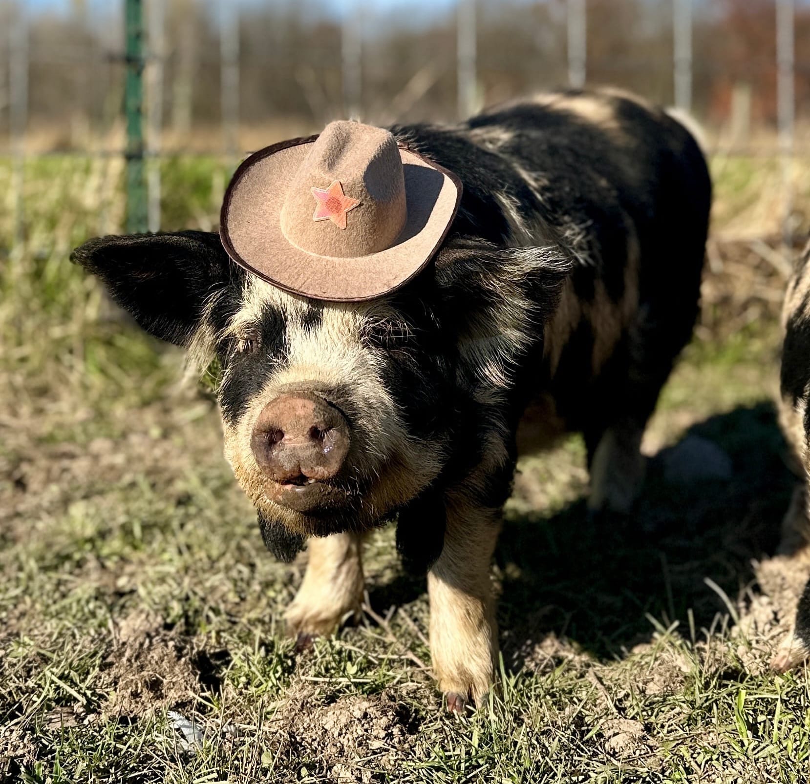 Description: Howdy partner! Say hello to our fastest growing piglet from all 2025 litters. She is long, with an excellent top line, just like her mom, Ani. Cowboy hat not included!