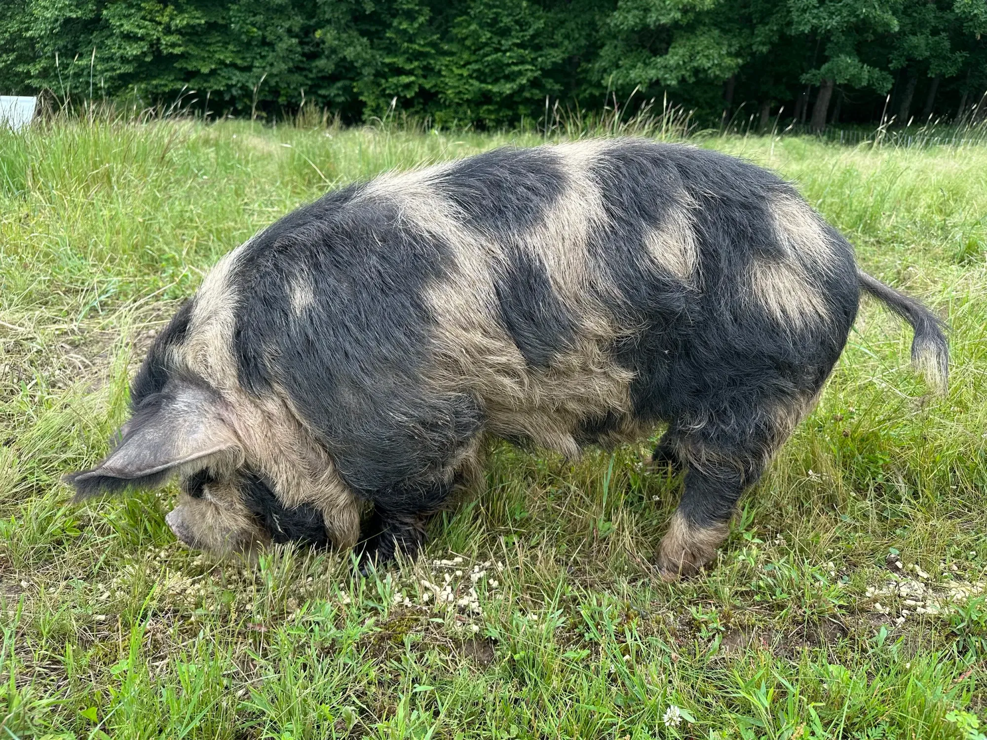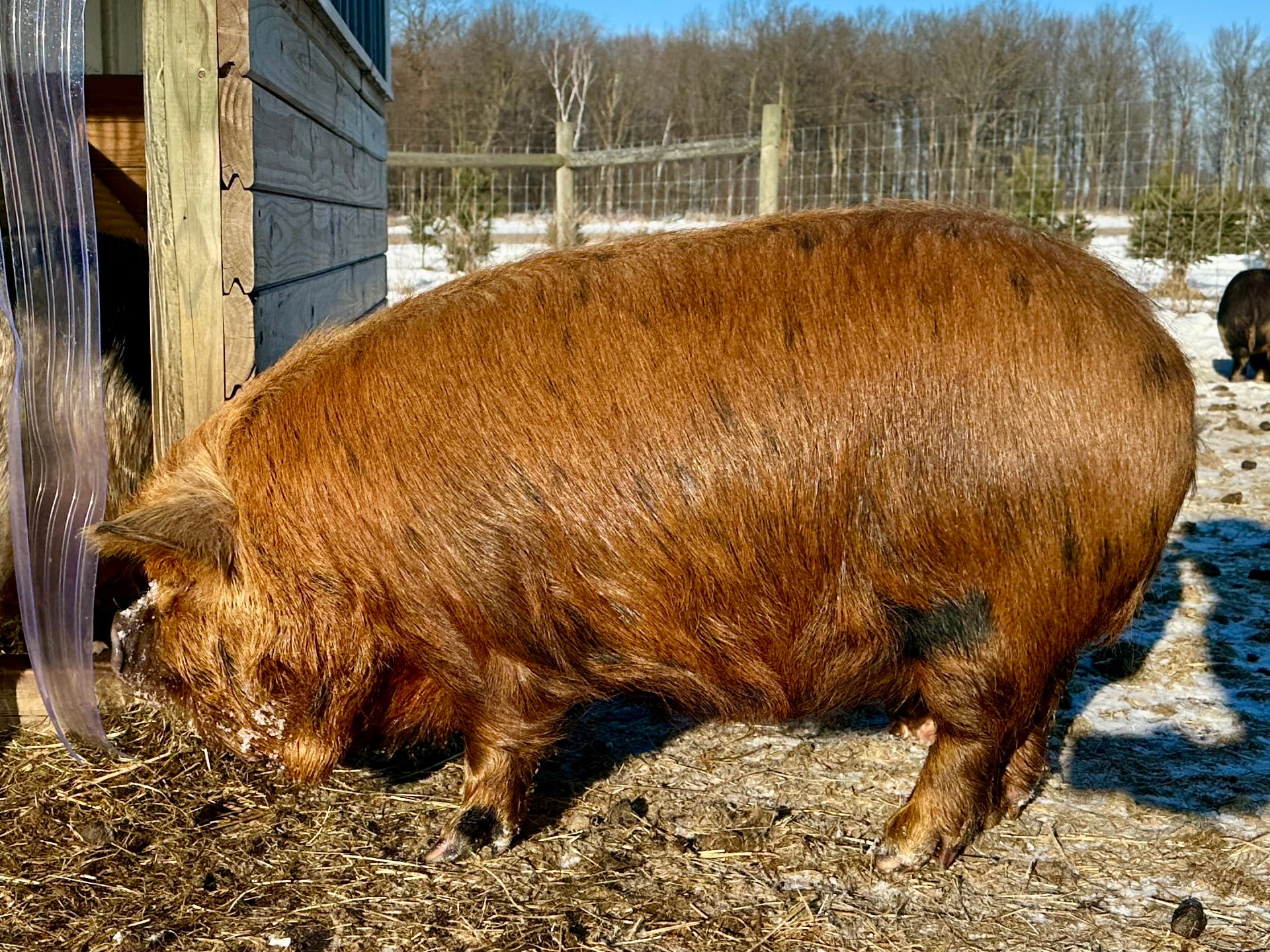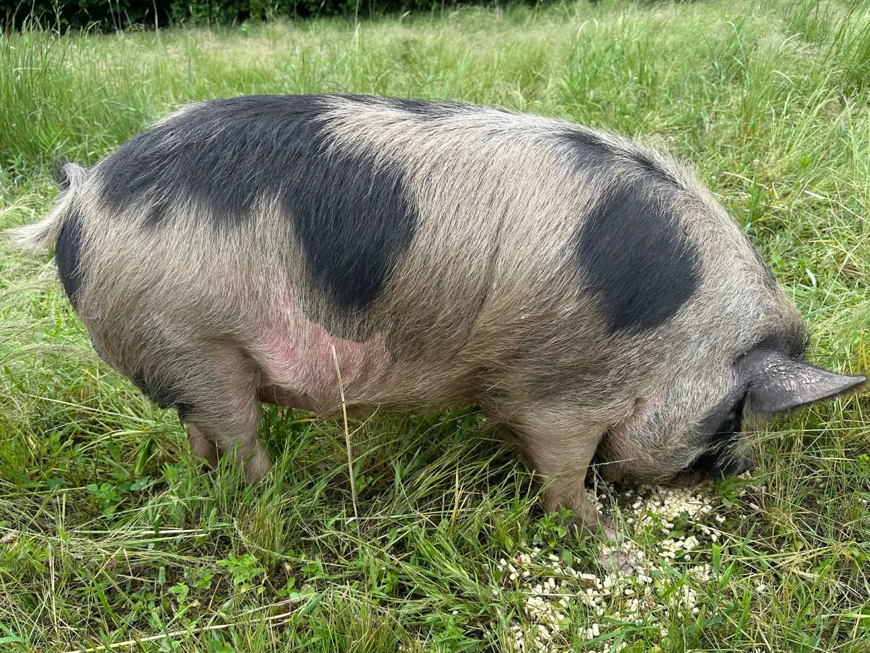 Description: Proven boar who has sired a number of litters on our farm. Named 101 for all of his spots (like a Dalmatian). Very kind, gentle, and stocky.