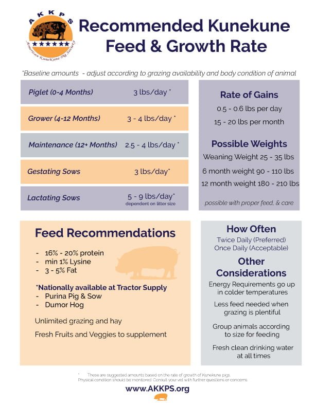 Given that KuneKunes are classified as lard pigs, with a tendency to accumulate fat rapidly, the choice of feed becomes a critical factor. It is essential to opt for feeds with lower protein content compared to those designed for commercial meat breeds. Look for feeds with approximately 16-18% protein, 1-1.5% lysine, 3-5% fat, and salt levels below 1%. The lower protein content is crucial to maintain the health of your pigs without encouraging excessive weight gain. Lysine plays a pivotal role in aiding pigs to efficiently utilize protein and essential amino acids in their diet. Additionally, it is imperative to keep salt levels minimal, as larger quantities can be toxic to pigs.