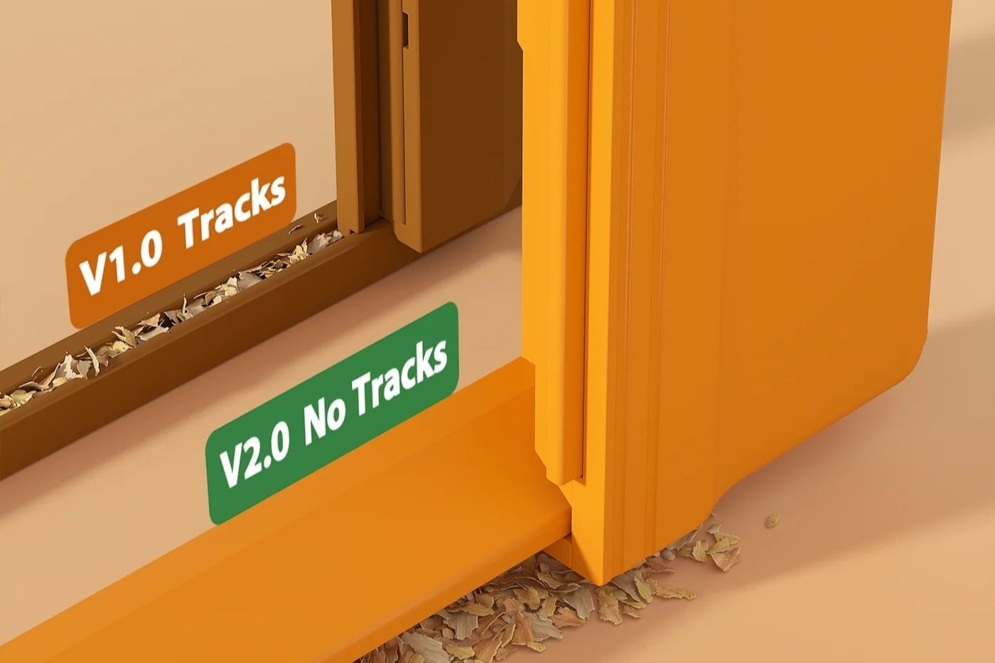 No-Track Design: One of my favorite features is the complete absence of tracks or grooves. The upgraded bottom design doesn’t collect dirt, sand, or debris. It's perfect for any coop flooring — wood shavings, straw, sand, or dirt — and built to handle all kinds of messy backyard environments. If you've ever dealt with doors getting jammed by debris in tracks, you'll appreciate this upgrade. No more cleaning stuck mechanisms or dealing with doors that won't close because of accumulated bedding material.